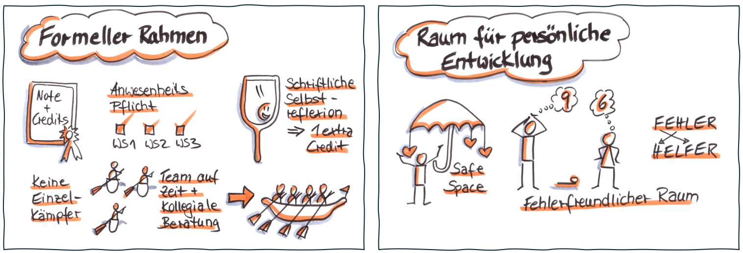 Seither setze ich sie nicht nur selbst ein, sondern vermittle die Technik als Werkzeug auch in meinen Workshops. Die Teilnehmenden erleben dabei mehrfachen Nutzen: Sie haben Freude am Gestalten, können eigene Gedanken besser ordnen und bleiben fokussierter. Indem sie versuchen, Inhalte visuell darzustellen oder auch einfach ästhetisch aufzubereiten, gehen sie inhaltlich tiefer.